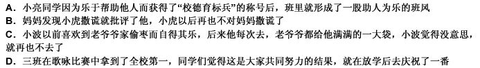 四、逻辑判断。共10题。每题给出一段陈述,这段陈述被假设是正确的,不容置疑的。要求你根据这段陈述,选择一个答案。注意正确的答案应与所给的陈述相符合。不需要任何附加说明即可以从陈述中直接推出。