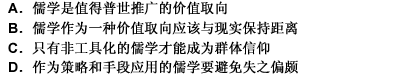 第 43 题“仁义”也罢,“中庸”也罢,作为价值取向,很是高尚,值得普世推广。并不能因为某些倡导者的虚伪,就判定相关学说是伪善的、只为专制统治服务等等。不过高尚是有条件的,那就是与实用和效益保持距离,非工具化和价值中立。一旦被拖人现实的泥淖,为实用目的服务,作为策略和手段来运用,就会失之偏颇,就会有美美恶恶之辟。只有儒学工具化过程的结束,其内涵的价值理性才会得到进一步开掘,其精神层面的力量才能逐步积聚,成为民族和群体的信仰。