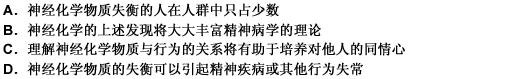 第 82 题神经化学物质的失衡可以引起人的行为失常,大到严重的精神疾病,小到常见的孤僻、抑郁甚至暴躁、嫉妒。神经化学的这些发现,使我们不但对精神疾病患者,而且对身边原本生厌的怪癖行为者,怀有同情和容忍。因为精神健康,无非是指具有平衡的神经化学物质。
