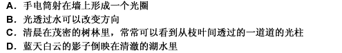 第 67 题丁达尔现象:指当一束光线透过胶体,从入射光的垂直方向可以观察到胶体里出现的一条光亮的“通路”。下列属于丁达尔现象的是( )。
