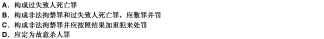 第 96 题甲为索取债务,将债务人乙关在地窖中长达四天四夜,因地窖内通风不畅,致使乙大脑缺氧死亡。对于甲的行为应如何定罪?( )