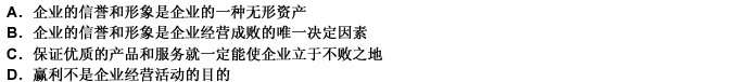 第 33 题北京南丁格尔服饰有限公司总经理告诉员工:“不要光看到钱,那只是一种有形的东西,而企业形象的扩大、信誉的提高,那才是我们真正的财富。”