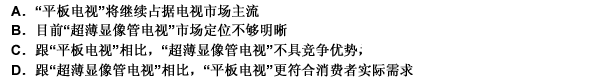 第 47 题在平板电视大行其道的今天,一种比普通电视薄十几厘米仿平板电视外形的超薄显像管电视出现在家电卖场中,但由于价格比普通显像管电视贵近千元,这种超薄显像管电视一上市就遭遇了销售尴尬。